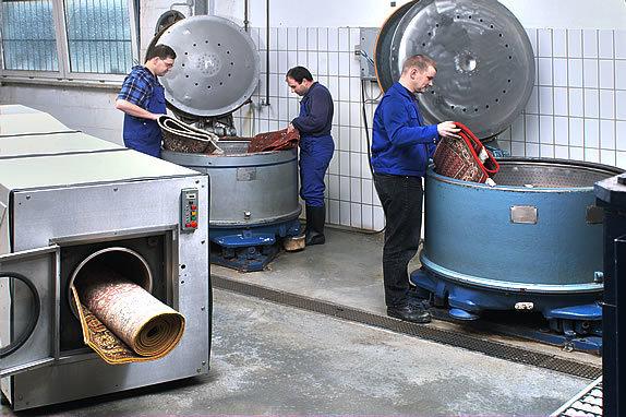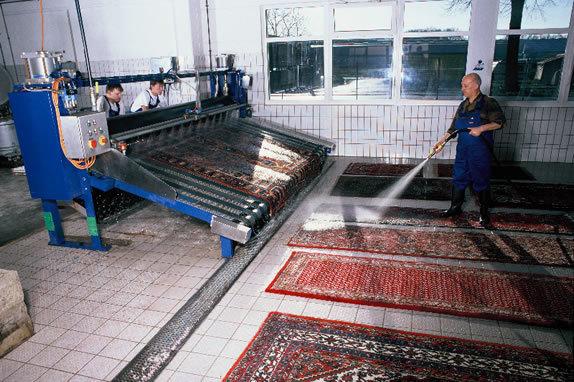 Deren umweltgerechte Waschstraße verfügt über hoch entwickelte Maschinen und kompetente Spezialisten für Ihren Teppich.